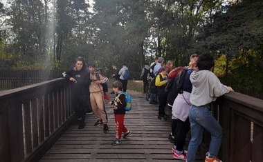 Celá naše výprava započala v pátek 20. října. V odpoledních hodinách jsme se všichni sešli na nádraží v Českých Budějovicích, odkud jsme jeli vlakem do města Nové Hrady a tam jsme přestoupili do autobusu, který nás odvezl o něco blíže našemu cíli. Samozřejmě jsme se nenechali odradit úsekem, který jsme museli překonat pěšky, a nezastavila nás ani výluka na trati. Když jsme dorazili na místo, ubytovali jsme se a vybalili jsme vše potřebné, jako jídlo, spacáky a hry. Milou společnost nám hned dělala místní kočka, kterou jsme pojmenovali Fred. Děti se hned také rozdělily do tří skupin a rozdaly si funkce a práci na celý víkend. Měli jsme tedy skupiny kuchtíků, topičů a uklízečů, které se během víkendu obměňovaly. Kuchtíci se pustili rovnou do práce a uvařili výtečnou gulášovou polévku. Zároveň se topiči začali starat o to, aby nám v domě nebyla zima, a tak nasekali dříví a roztopili kamna. Venku se zatím setmělo a my jsme se po vydatné večeři a po krátkém odpočinku vydali na stezku odvahy. Stezku odvahy všichni bravurně zvládli a někteří byli tak odvážní a nebojácní, že prošli stezku dokonce dvakrát.