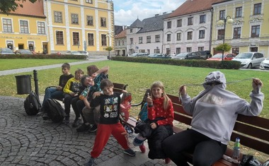 Sobota se nesla v ještě aktivnějším duchu. I přesto že jsme mohli spát o něco déle, ranní ptáčata už nedočkavě skákala z postelí a postupně probouzela ostatní. Některé děti zřejmě nemohly dospat nadšení z nadcházejícího výletu. Dopoledne bylo klidné, někteří hráli deskové hry, jiní pobíhali venku s míčem a bylo možné si zahrát i stolní tenis. Pak se znovu nasekalo dříví a kuchtíci tentokrát k obědu připravili řízky s bramborovou kaší. Řádně najedení jsme se tedy vydali na výlet. Šli jsme lesem asi hodinu, abychom se dostali na autobusovou zastávku, ze které jsme jeli přes tři zastávky až do Nových Hradů. Když jsme přijeli, zamířili jsme rovnou k hradu. Prošli jsme hlavní bránou a ocitli jsme se na rozlehlém nádvoří, kde jsme si odpočinuli, a dali jsme si svačinu. Když jsme doplnili síly, vydali jsme se na prohlídku hlubokého hradního příkopu. Dozvěděli jsme se, že v příkopu kdysi dávno žili medvědi, ale my jsme tam nalezli pouze malé žabky. Z hradu jsme se vydali objevovat město a naším dalším cílem se stal Zevlův mlýn, kde si děti mohly prohlédnout staré zemědělské stroje, staré traktory a sekačky, mohly vidět různé druhy zvířat a nakonec si zaskákaly na trampolíně. Zpět na Tampír jsme jeli zase autobusem, avšak tato cesta byla klidnější, protože nejméně polovina dětí stihla usnout. Pak ale děti nabyly nových sil, když zjistily, že se budou opékat buřty. Hned po příchodu jsme rozdělali oheň, sedli jsme si kolem ohniště a vychutnávali si opečené buřtíky.
