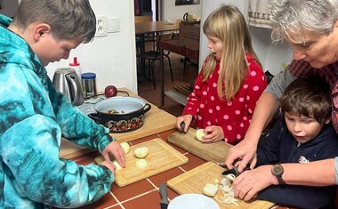 Protože byl sobotní výlet náročný a všechny zmohl, v neděli ráno jsme si dovolili trochu přispat. Nedělní snídaně byla opravdu speciální, protože si děti mohly vybrat z několika možností. Na stole bylo připraveno pečivo a sýry, či vánočka a k tomu čaj nebo kakao a v neposlední řadě i banánový koktejl. Po snídani jsme se všichni pustili do práce. Kuchtíci začali připravovat oběd, tentokrát to byly špagety, topiči vymetli kamna a nasekali dříví pro další návštěvníky a uklízeči dostali za úkol zamést, vytřít a vrátit vše do původního stavu. Po obědě si všichni sbalili věci a u ohniště jsme si udělali závěrečné kolečko, kde každý vyjádřil a ohodnotil, co se mu na uplynulém víkendu líbilo či nelíbilo. Cestu domů všichni s přehledem zvládli a naši výpravu jsme zakončili na českobudějovickém nádraží, kde už na své děti čekali rodiče.
