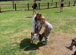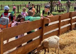 Prošli jsme si plán celého areálu a pak už se vydali na cestu kolem ohradníků se zvířaty. Největší úspěch slavil výběh s malými kozičkami, které si děti hladily a krmily je. I děti, které byly ze začátku ostýchavé a nešly do výběhu, se nakonec odvážily. Chtělo to jen čas; zpovzdálí nejdříve jen omrknout a pak až se sblížit. V dalším výběhu nás čekali velbloudi, lamy, texaský dlouhorohý skot, minikrávy, koně, ovce a další zvířátka. Cestou mezi zvířaty zazněla zakázka od jedné malé slečny, že by chtěla vidět les. A protože nám blízké okolí bylo velmi známé, šli jsme přímo za nosem cestou dál, vzhůru do lesa. Nejen, že byla zakázka splněná, ale cestou jsme se naučili i pár nových stromů a keřů.
