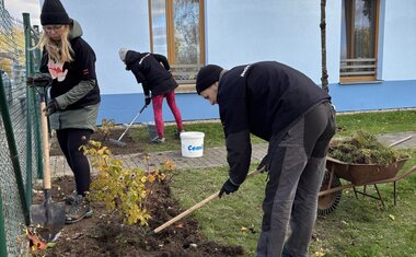 Děkujeme dobrovolníkům z E.ONu za velkou pomoc s přípravou naší rozlehlé zahrady Domu sv. Františka na zimu. Je to už po několikáté, kdy nám pomohli s různými úklidovými nebo zahradními činnostmi a jsme moc potěšeni, že se k nám rádi znovu vracejí.