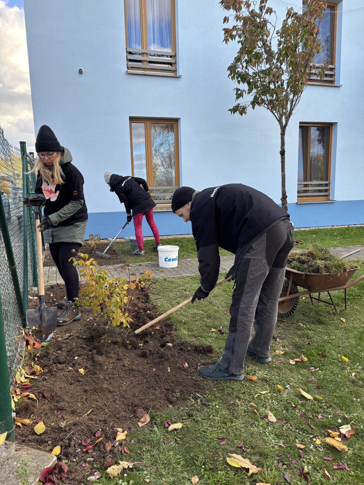 Děkujeme dobrovolníkům z E.ONu za velkou pomoc s přípravou naší rozlehlé zahrady Domu sv. Františka na zimu. Je to už po několikáté, kdy nám pomohli s různými úklidovými nebo zahradními činnostmi a jsme moc potěšeni, že se k nám rádi znovu vracejí.