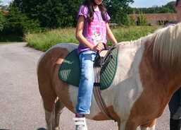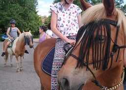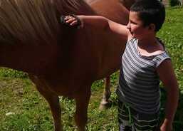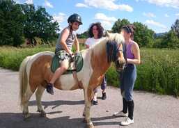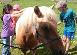 Velká většina dětí na koni ještě nikdy neseděla. Ve vzduchu tak panoval mírný strach i těšení na blížící se dobrodružství, ale hlavně velké nadšení z toho, že pojedou poprvé na koni. Ve výběhu s koňmi pracovnice farmy děti obeznámila s tím, na co si mají dávat pozor i jak je nutné se o koně starat – to si děti hned vyzkoušely v praxi. Poníka Ferdu a koně Bristona si pečlivě připravily na ježdění, zkusily si hřebelcování a sedlání. Prvotní ostych a strach tak vystřídala důvěra a odhodlání. Děti dostaly od pracovnic za hřebelcování a čištění pomyslnou jedničku a mohly vyrazit prozkoumávat okolní krajinu z koňského hřbetu. Ti, co právě nejezdili, hráli tematické hry, krmili ovce a kozy tvrdým chlebem, který dostali od pracovnic.
