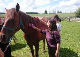 26. června si Young Caritas ČB připravilo odpoledne s hipoterapií pro děti navštěvující kroužky pod Dobrovolnickým centrem DCHCB. Většina dětí si tak vůbec poprvé mohla vyzkoušet, jaké to je sedět na koňském hřbetě, jak se o koně starat i na co je třeba dávat si pozor. Důležitost důvěry mezi koněm a člověkem mohly děti na vlatní kůži poznat na statku organizace KONÍČEK, o.p.s. ve Skřidlech.