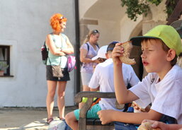Ve čtvrtek se táborníci vydali hledat své kořeny a minulost do Nových Hradů s rytířem Ferdinandem Buquoyem, který jim zanechal další důležitou indícii k plnění týdenního úkolu. Kromě hledání tajemného vzkazu, ražení mincí či pikniku v přírodě nechyběla dobrodružná procházka k vodopádu v Terčině údolí.